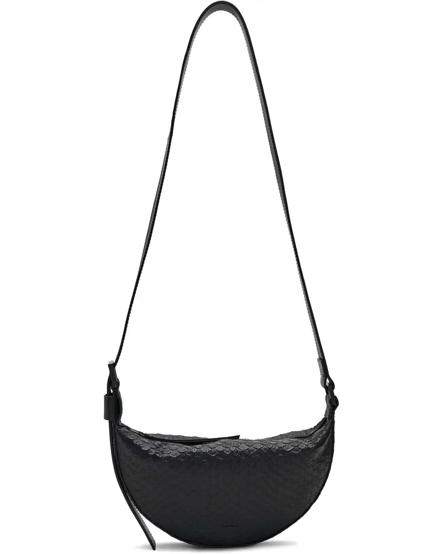- Make a bold statement carrying the AllSaints™ Half Moon Snake Xbody. Crafted from leather with a snakeskin finish and shaped to a compact crescent silhouette with plenty of space on the inside. The adjustable strap makes it super easy to wear. Featuring zippered closure, metal hardware on the front, and two interior pockets.