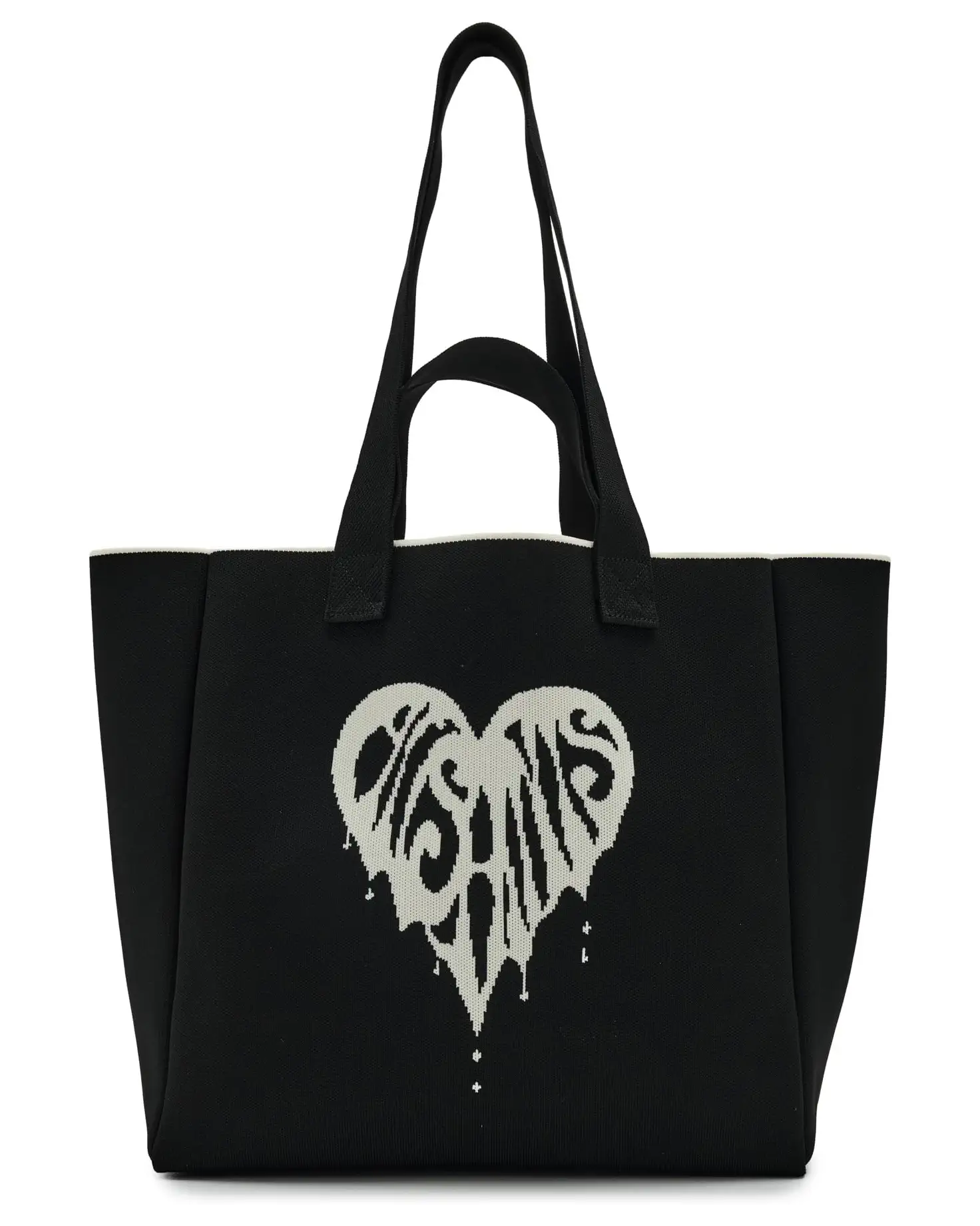 - The AllSaints™ Izzy Heart E/W Tote is a bold reinterpretation of everyday carry. Crafted from polyester, its spacious silhouette features dual straps, a large internal slip pocket, and a dripping heart graphic at the front.