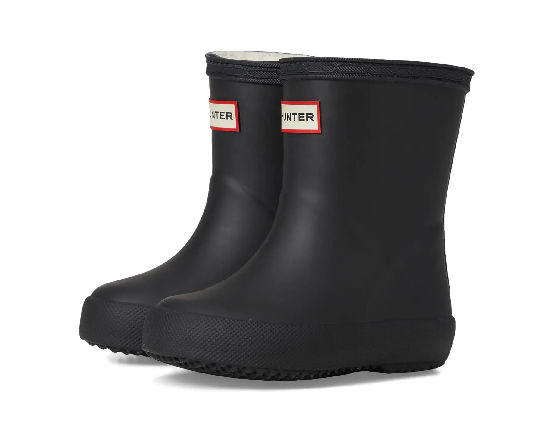 - Keep little feet warm and dry with the Hunter® Kids First Insulatd Boots. Crafted with a lightweight, waterproof construction and cozy insulation, these boots offer full coverage against cold and wet conditions. The soft recycled polyester lining adds warmth, while the grippy rubber outsole ensures stability on slippery surfaces.