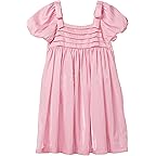 - The Janie and Jack® Shimmer Dress adds a gentle shimmer and elegant texture to your kiddo's style. Featuring short puffy sleeves, a gathered waist, pleated bodice, and a buttoned back closure, it offers both comfort and charm.