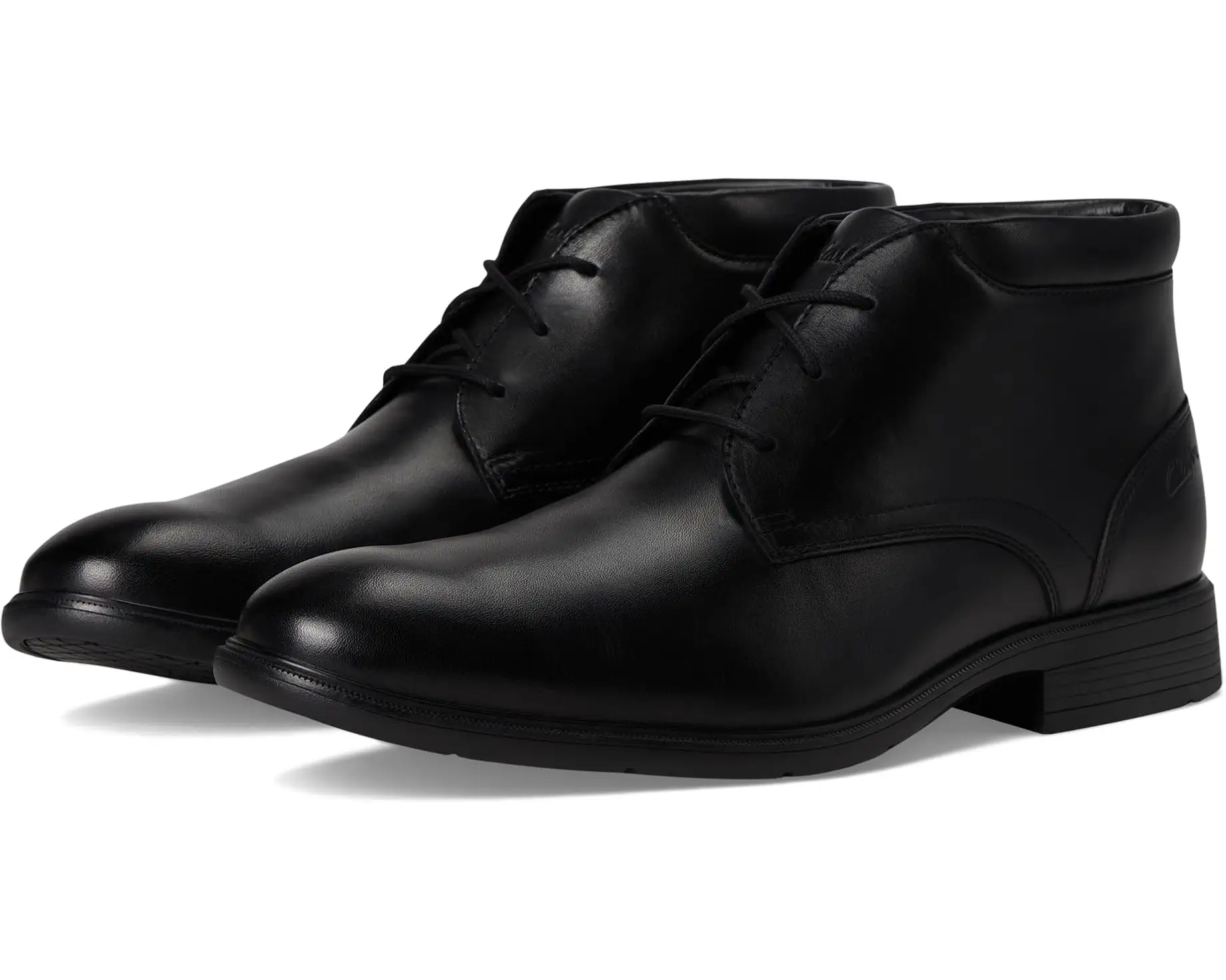 - Clarks® Steadwell Mid is your go-to chukka dress boot for the fall season. Crafted from a premium full-grain leather upper, this modern silhouette features a slip-resistant rubber outsole with Clarks Collection Steady Tread design, delivering confident movement for any occasion. Inside, a molded comfort footbed with an easy-entry sock cover guarantees effortless wear.