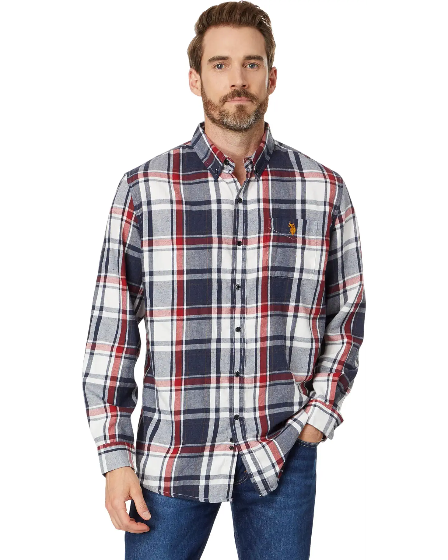 U.S. POLO ASSN. Long Sleeve Classic Fit 1 Pocket Yarn Dye Peached Twill Heathered Plaid Woven Shirt Men's