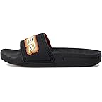 • Walk comfortably in the town wearing Quiksilver® Kids Quiksilver® Kids Rivi Wordmark Slide II Sandal. It features slip-on style, open toe, and wide strap with branding. It is made of man-made upper, lining, and insole.