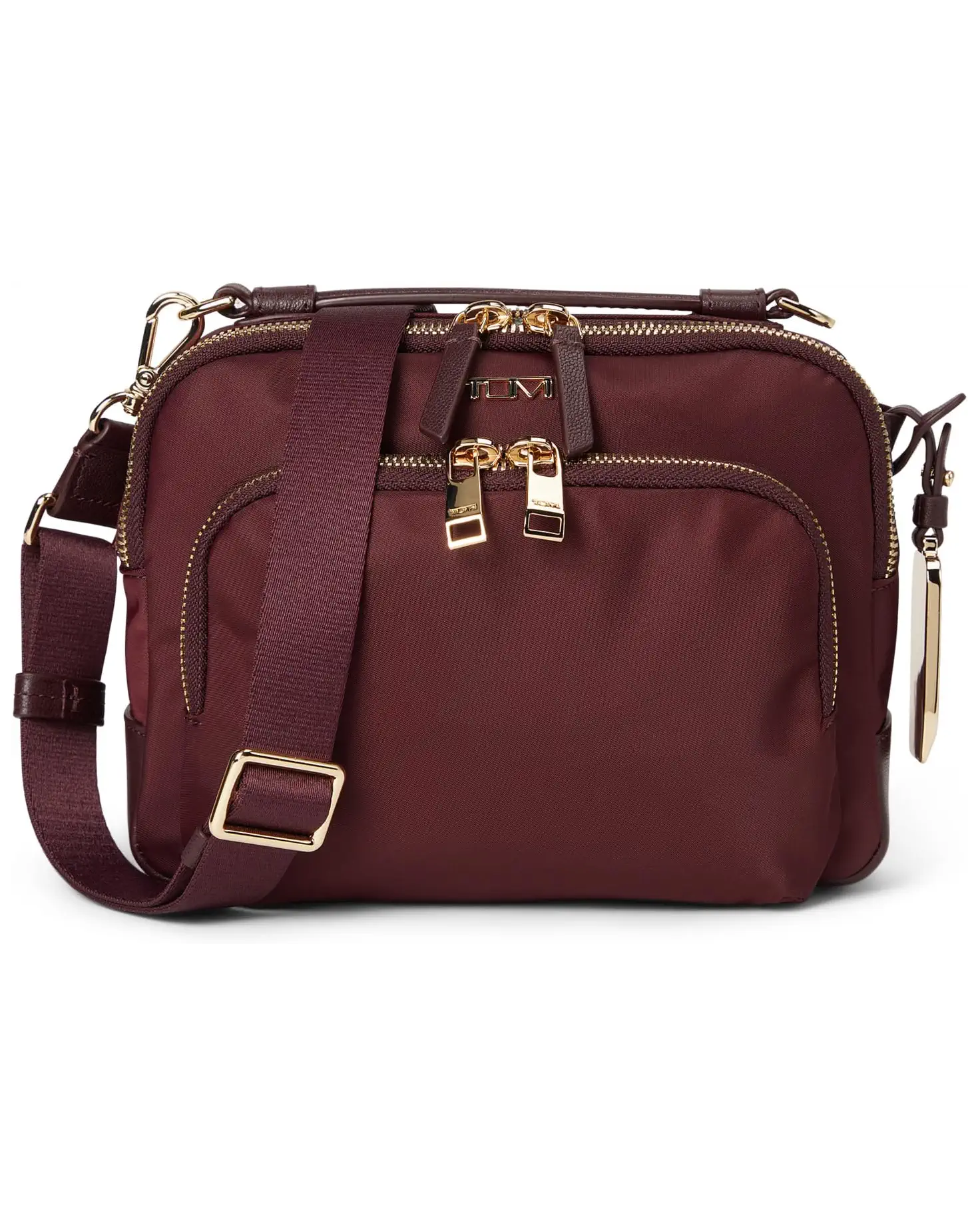 • The Tumi® Teghan Crossbody is designed to offer functionality while boasting chic finesse. The double-zip entry to the main compartment and front U-zip pocket ensures easy access to your essentials, while the back open pocket with a hidden magnetic snap closure offers convenience. The collapsible leather top handle provides versatility, allowing you to carry it by hand or with the removable adjustable crossbody strap. Customize your bag with the monogrammable detachable leather charm, and rest assured that your bag stays pristine with the four metal feet. Its interior features a zip pocket, media pocket, key leash, and a leather card pocket to keep your belongings organized.