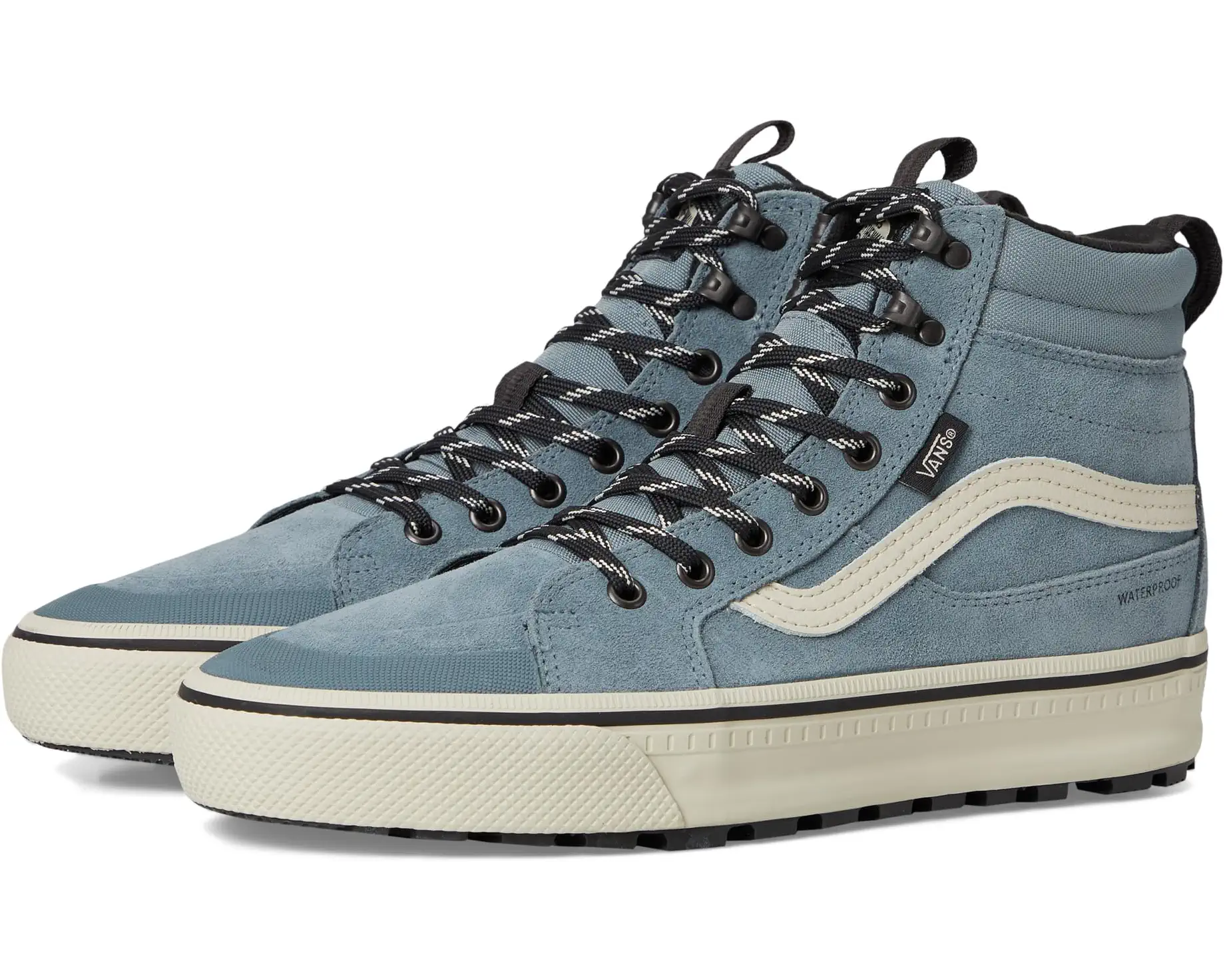 • Designed in chic high-top silhouette with signature Sidestripe™ detail, the Vans™ U MTE™ SK8-Hi® Waterproof Insulated Sneakers is perfect for all your go-to looks. The Breathable and DWR (water repellent) coated upper keeps the drizzle out. The HydroGuard waterproof construction is watertight and stretchable, which results in comfortable, breathable waterproof technology. The 100g Primaloft insulation package uses a high-quality microfiber thermal insulation system to mimic the warmth-providing properties of down, keeping you warm without retaining internal moisture. The round-toe sneakers come with a canvas upper and cotton lining. The single-density UltraCush molded EVA footbed delivers enhanced comfort for all-day wear, while the All-Trac cold weather rubber outsole provides flexible underfoot lugs to bend with terrain changes, creating more surface area and better variable adaptability.