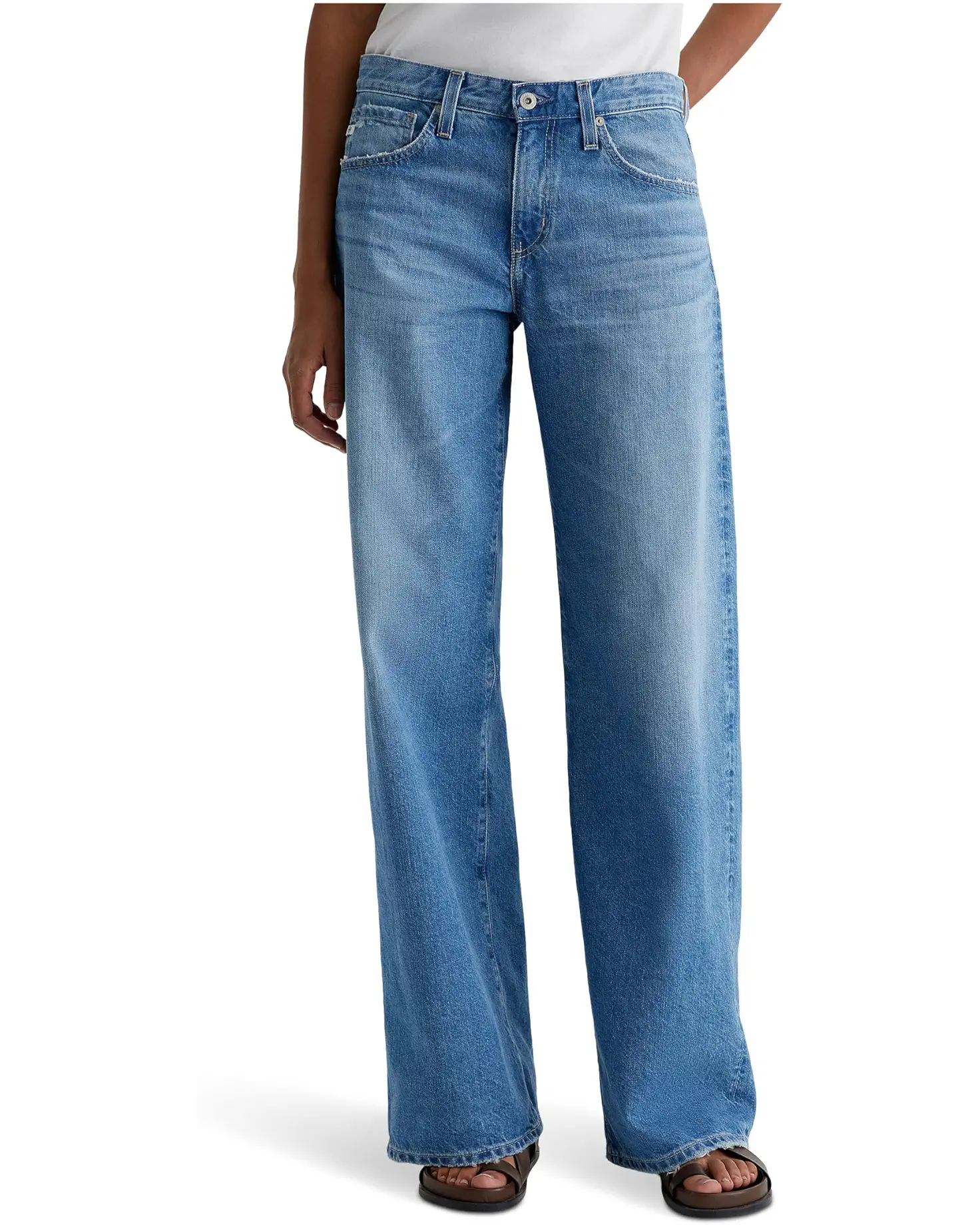 - The AG® Jeans Adria Low Rise Baggy Wide Leg hangs on the hip for a slouchy, relaxed look. The fit is relaxed in the hip, wide in the leg and meant to puddle at the hem for that effortless, off duty vibe.