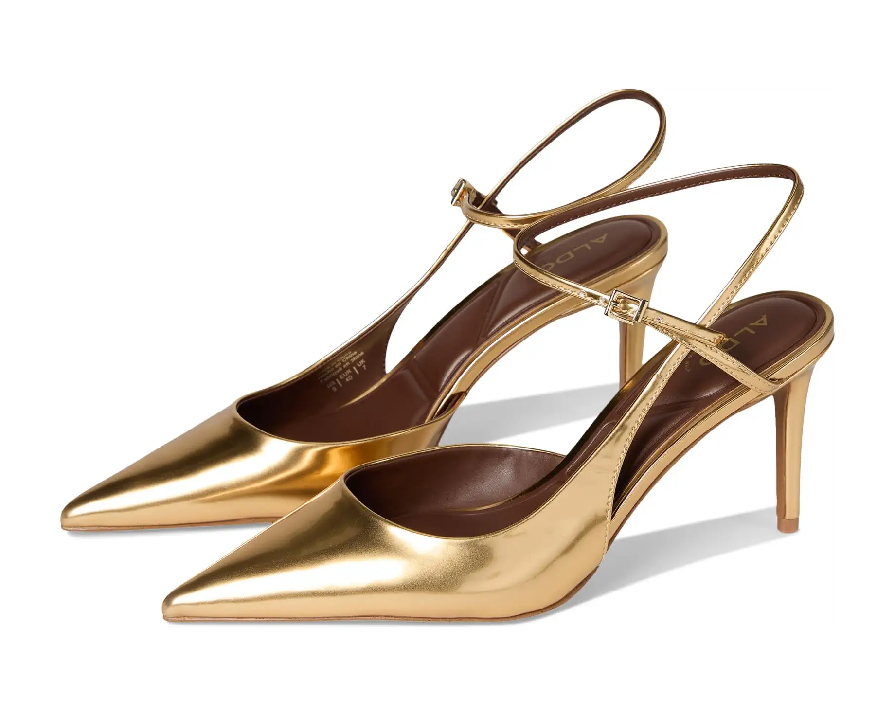- Slay all day, strut all night in the ALDO® Kymmberly. Featuring a pointed toe and chic strappy slingback design, these heels are crafted with a PU upper, lining, insole, and outsole for polished appeal. The slim buckle ankle closure adds a touch of elegance, while the stiletto heel serves serious leg-lengthening vibes. But the real game-changer? ALDO's Pillow Walk™ padded insoles that deliver dreamy comfort with every step-because style this bold should never hurt.