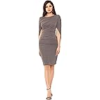 - The Betsy & Adam™ Short Rouched Metallic Knit Drape Back Sleeve features a sheath silhouette, flattering ruching, and a metallic knit fabric.