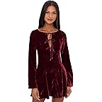 • Add a Renaissance-faire flair to your chic style in the Free People™ Linney Velvet Mini dress. With a V-neckline and front tie closure, this dress offers long bell sleeves and a fit-and-flare silhouette.