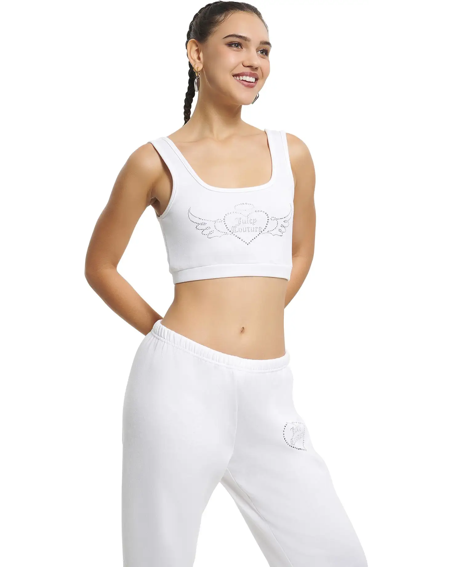 - Discover the perfect balance of style and ease in this Juicy Couture® Vday Fleece Cropped Tank With Hotfix top, your go-to choice for versatile dressing. This crop silhouette tank top features a square neckline, broad straps, a straight hem, and brand detailing on the front.