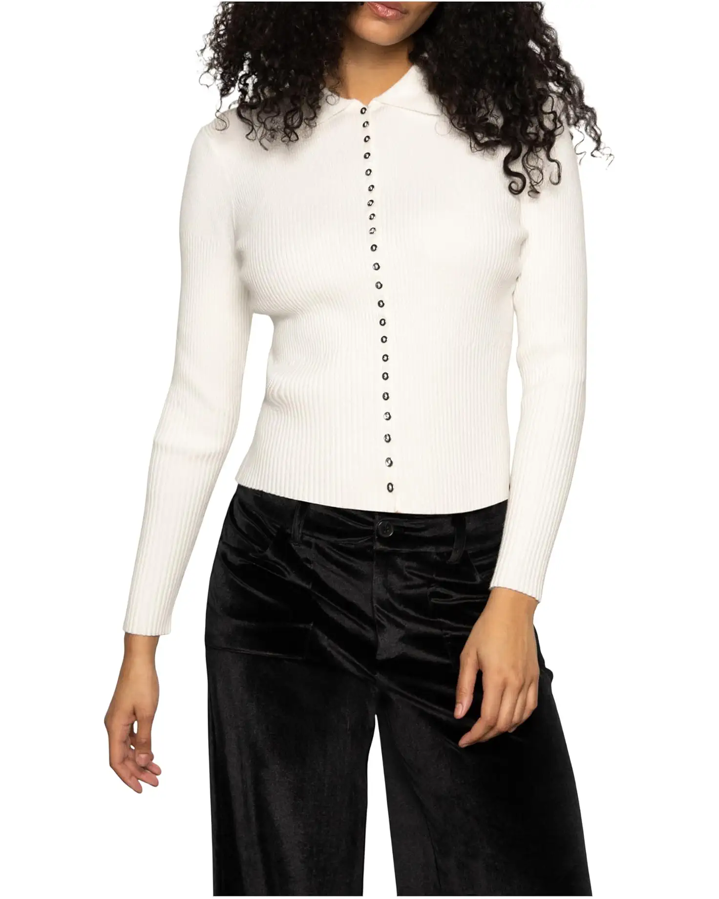 - Add the perfect layer of cozy comfort in the Sanctuary™ Button Down Variegated Cardi. Featuring a round neckline with a front button closure, long sleeves, straight hemline, and a classic fit silhouette.