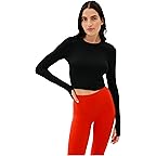 - Ultra-luxe Super soft ribbed long sleeve crop top with a scoop neckline and thumbholes. Wear it alone or layer it up for your next workout.