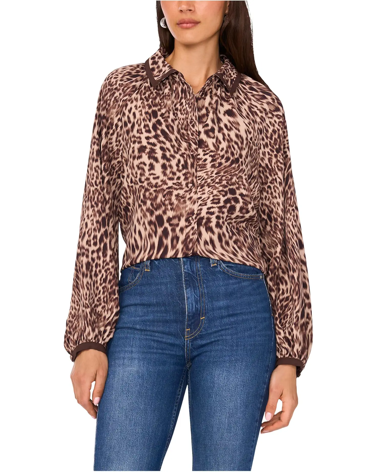 - Step out in chic style in the Vince Camuto® Full Raglan Sleeve Shirt. Featuring a spread collar with a front button closure, long sleeves with elastic cuffs, allover print, and a straight hem.