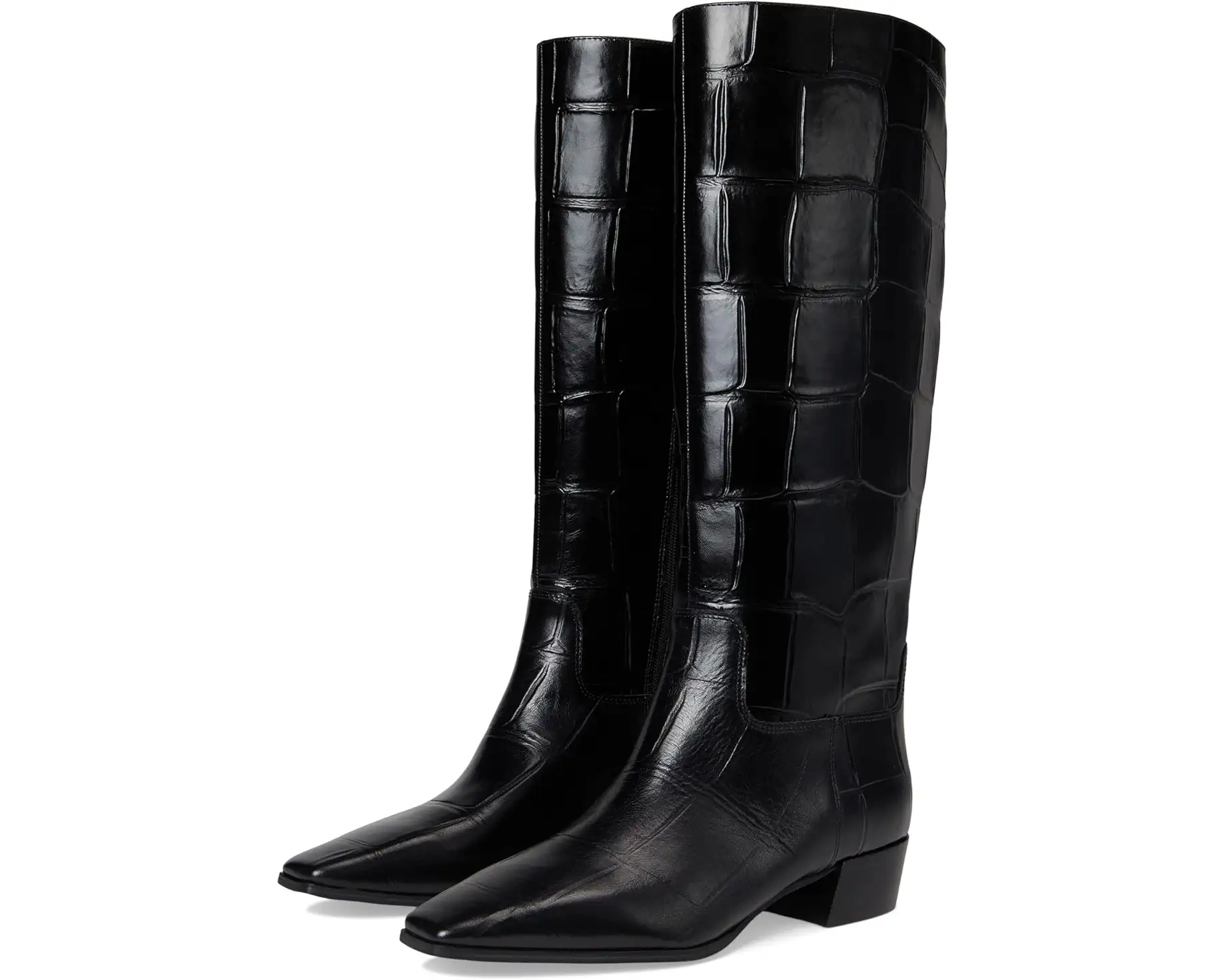 • These sleek Vince Camuto® Pavla Knee High Boots exude effortless sophistication. Crafted from croc embossed leather, these heeled boots showcase a refined silhouette with a pointed toe shape and a subtly structured shaft. The low stacked block heels offer both style and comfort, and the full-length zippered side closure makes for easy entry. They are made of a polyester insole and fabric lining. Whether paired with tailored trousers or a chic dress, these versatile heeled boots add a polished touch to any outfit.