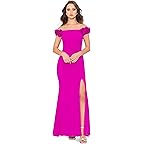 - The XSCAPE® Long Scuba Crepe Off The Shoulder Flower dress is the epitome of elegance and sophistication. With its stunning off-shoulder design and delicate ruffle details, it effortlessly brings out your feminine grace. The mermaid silhouette accentuates your curves, making you feel like a true princess. The floor-length dress features a side slit on the left leg, adding a hint of sensuality to your every step.